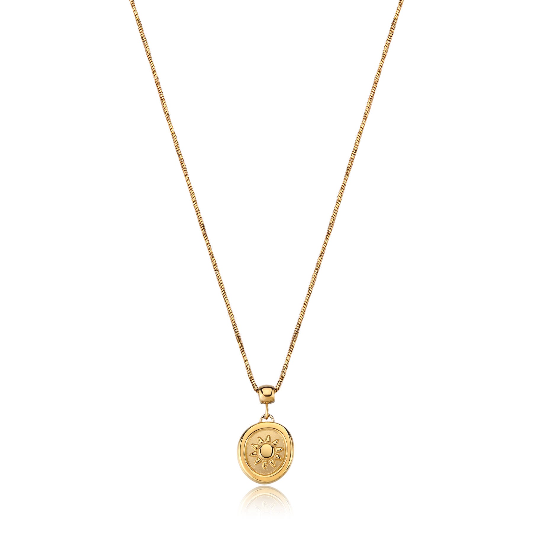 Collana girocollo in acciaio 316L e finitura pvd oro 14K con pendente satinato con sole.